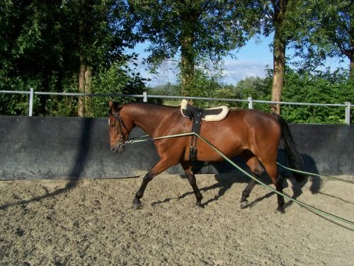 Sommige paarden gaan aan de longeerlijn hangen, en trekken de longeur als ware naar buiten. Probeer het dier met halve ophoudingen te corrigeren. Wanneer het paard steeds de uitgang van de longeercirkel aan de lijn gaat hangen, omdat hij naar buiten wil vluchten (en ga er maar uit dat elk paard bijzonder snel doorheeft waar de uitgang van de longeercirkel zich bevindt), kan je daar bijvoorbeeld een hindernisbalk op de grondleggen. Of vraag hulp die zich op de plaats op te stellen om het paard door te laten lopen.