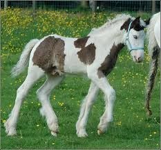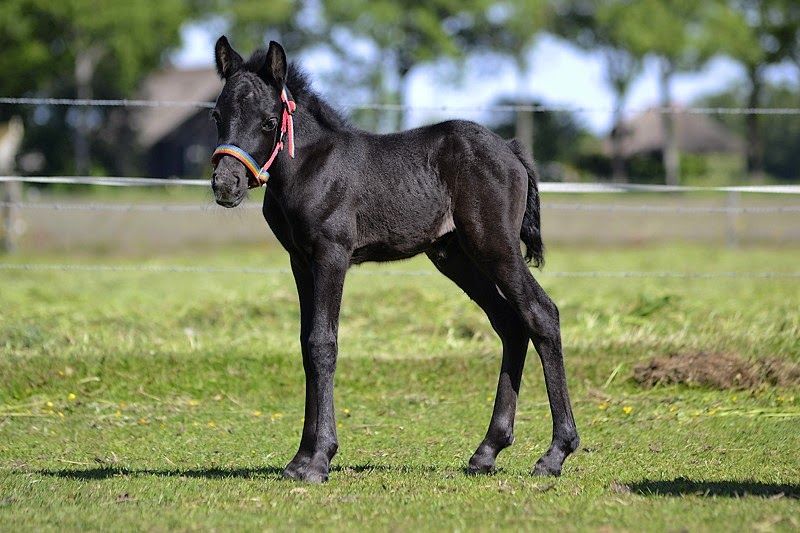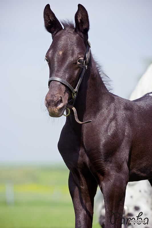 Het veulen weigert mee te lopen.